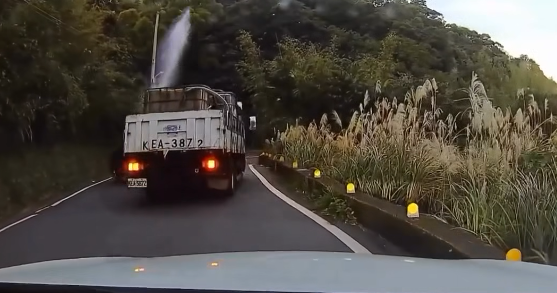 從影片可以看到,這條山路其實不算窄,貨車正常行駛在自己的車道上,沒想到對向轎車過彎時突然失控橫移,直接撞上貨車左側。撞擊瞬間轎車引擎室冒出火光,貨車則像噴泉一樣噴出大量的水,場面相當驚險。更可怕的是,轎車差一點就要衝出護欄掉下山谷,幸好被貨車擋住才沒釀成更大悲劇。