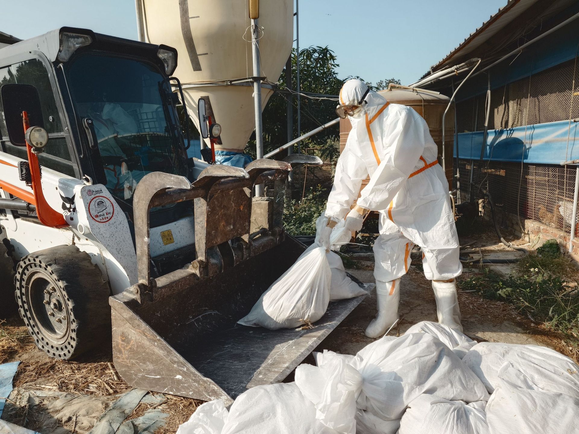 動物防疫人員進行禽舍消毒