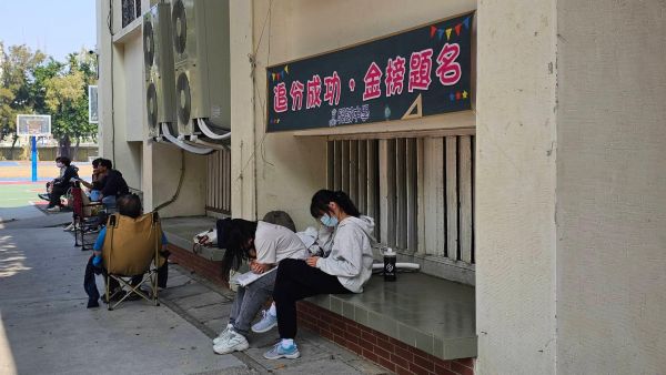 圖1-2:115學測最後一天考數學B和社會,考生於休息時間備戰。